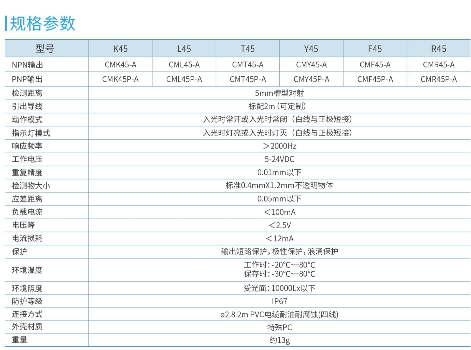 測(cè)試距離:5mm槽型對(duì)射